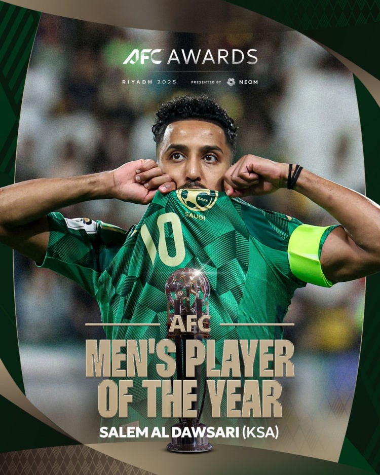 10月17日讯 官方消息,利雅得新月34岁翼锋萨利姆-多萨里当选2025年亚足联最佳球员。