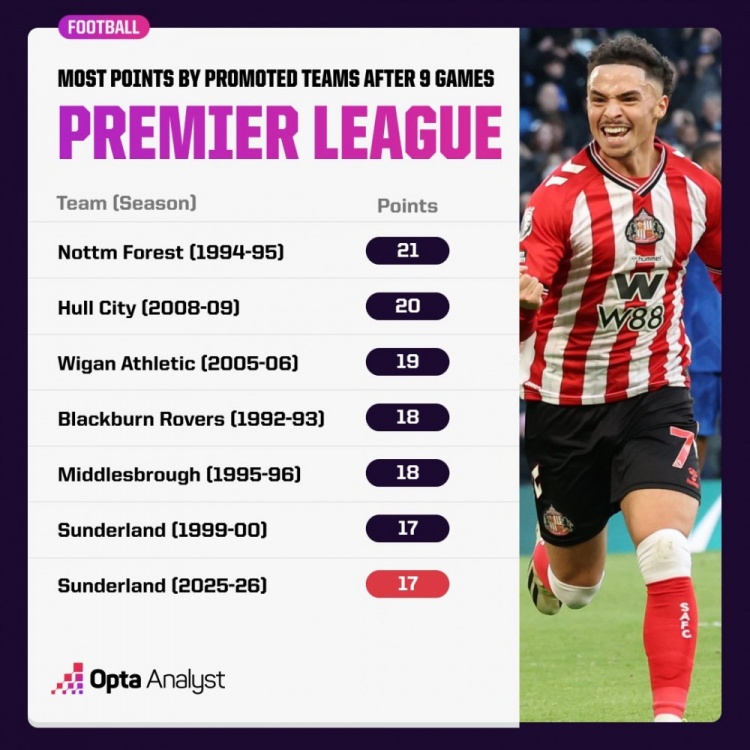 哪怕你是想象力出奇丰富的球迷,估计也不会在预测新赛季英超排名时,把升班马放在前列。这项赛事素来角逐 剧烈 ,既有 BIG6 豪门坐镇,也有不少新贵争夺欧战资格,对新球会来说的确很 “不友好”。不过桑德兰却 “不这么想”,上赛季他们在英冠(二级赛事)打出佳绩成功升级后,本赛季更进一步,9 轮战罢位列前四,着实令人大跌眼镜,黑猫是真不好惹!