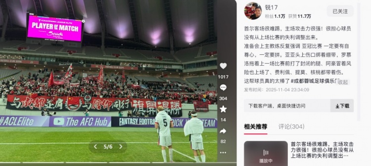 11月5日讯 亚冠精英联赛第四轮,成都蓉城客场0-0战平首尔FC。赛后,蓉城助教甘锐发文称,准备会上主教练反复强调亚冠一定要拼,24直播网这帮球员真的太棒了足球球员比赛回顾。