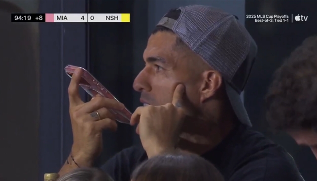 看赛事 太轻松了!迈阿密4球领跑 ,苏亚雷斯场边拿着手机聊天