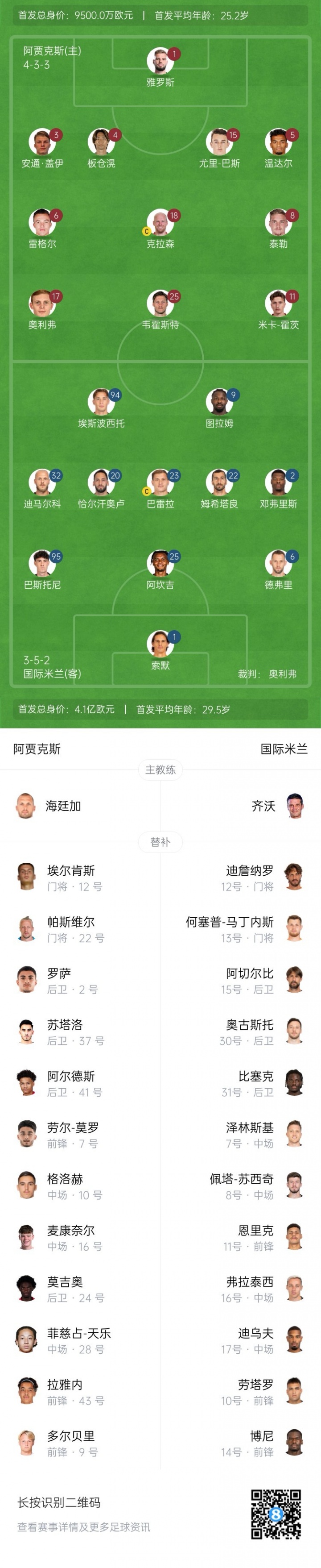国米vs阿贾克斯杆位:小图拉姆、P-埃斯波西托先发,劳塔罗后备