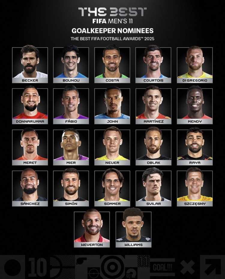11月7日讯 FIFA官方公布了2025年最佳阵容门将位置的候选,英超免费在线高清直播库尔图瓦、多纳鲁马、阿利松、诺伊尔在列。