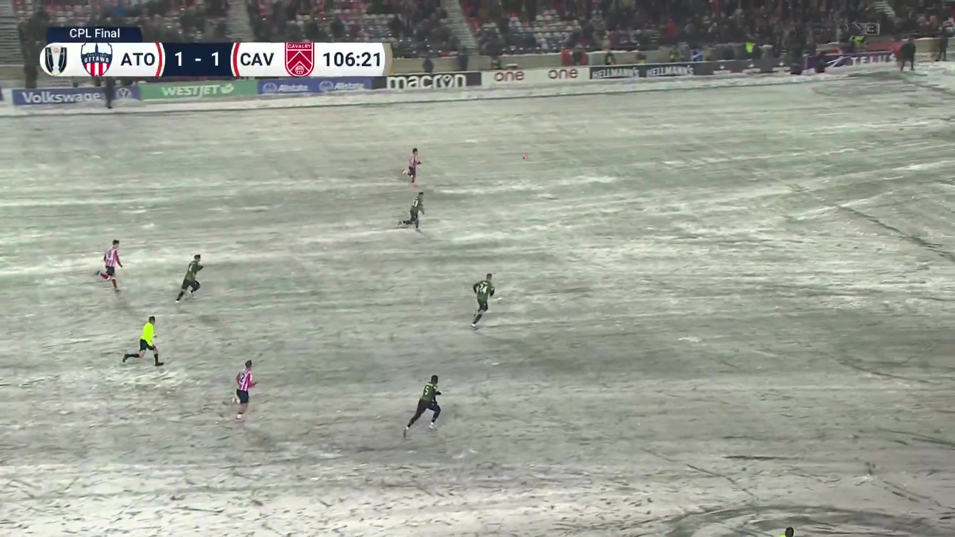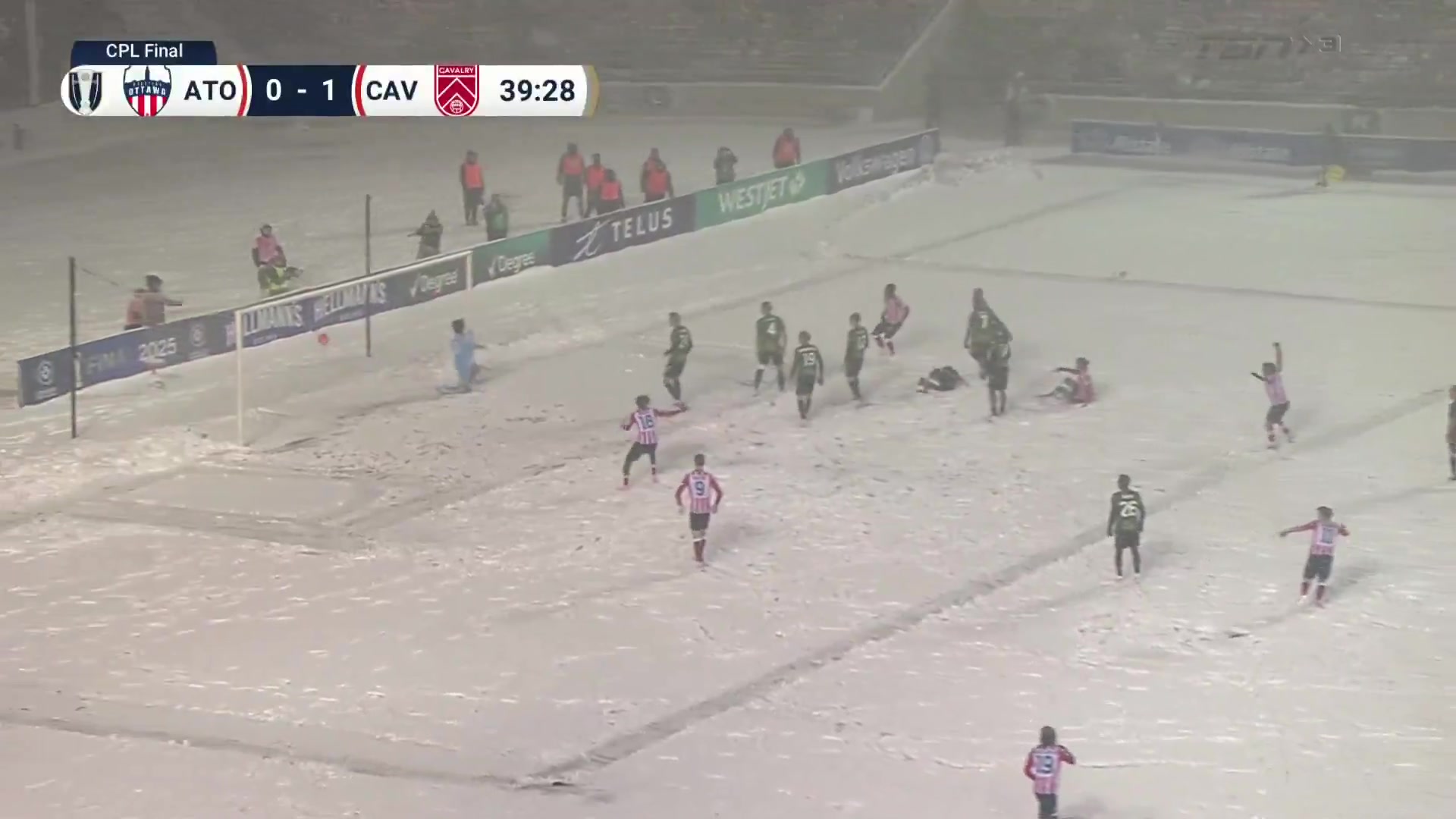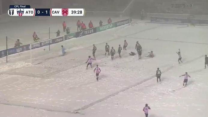 本场比赛在冰天雪地里进行,渥太华凭借戴维·罗德里格斯的两粒进球,击败骑兵队,24直播网拿下总冠军。本场比赛满天飞雪,草地全白,能见度极低。