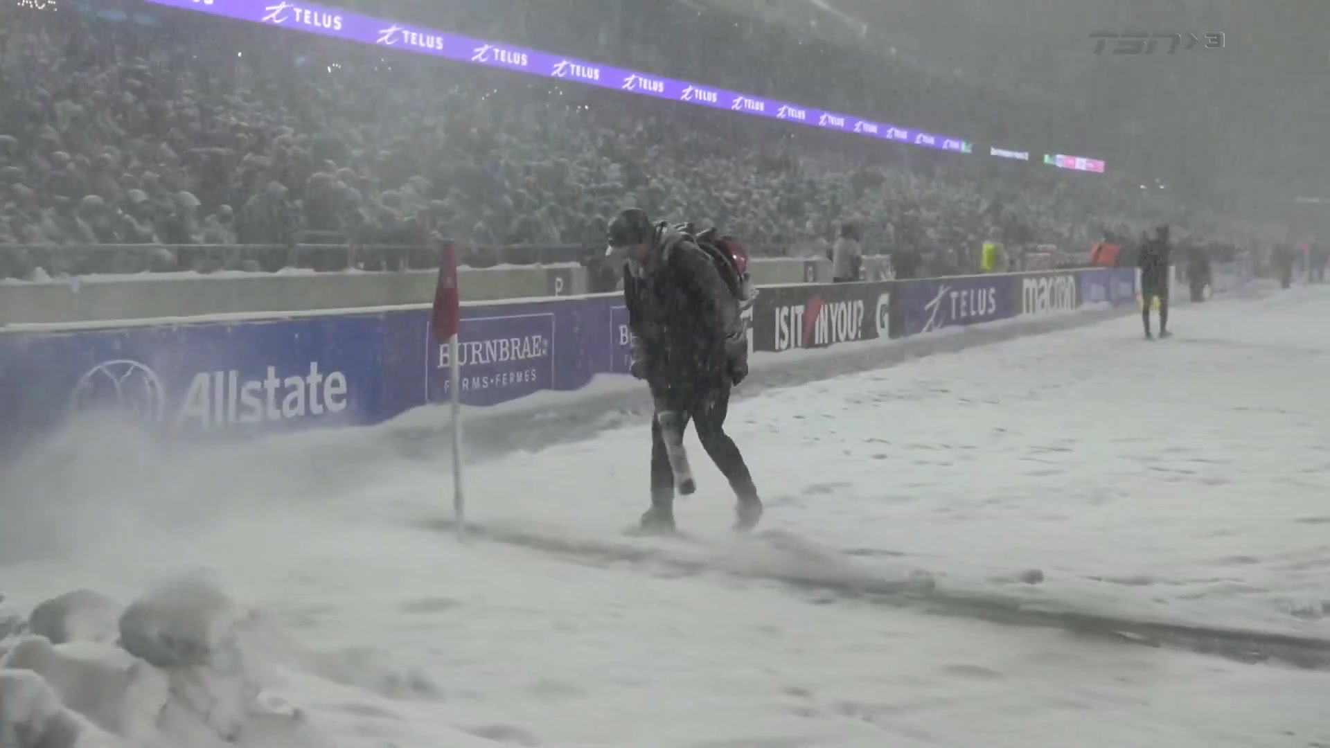 踢雪球!加拿大联赛决赛暴雪中举行,漫天飘雪草地全白啥都看不见