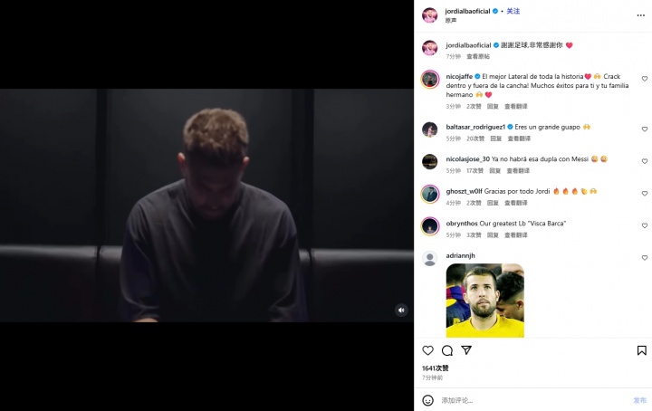 官方:36岁前巴萨边后场球员阿尔巴宣布退役!