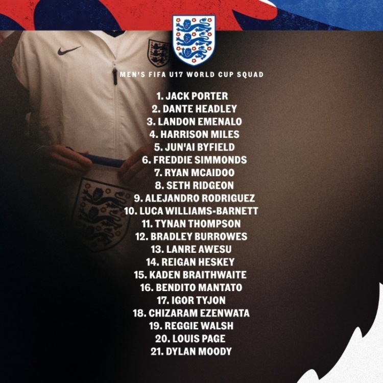 首次扩军至48支队!英格兰U17世界杯赛 名单:麦卡杜、巴尼特入选
