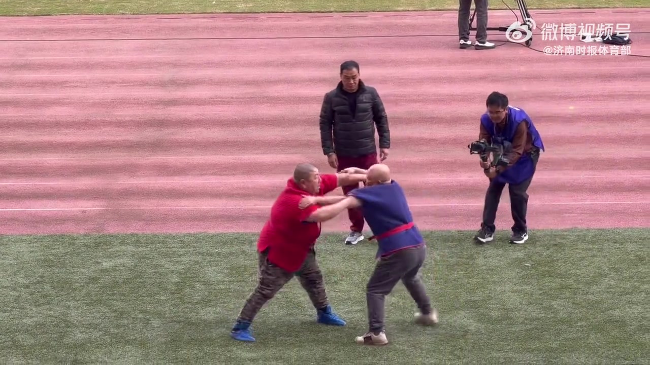 硬碰硬!泰山vs海港赛前进行了暖场节目——角力