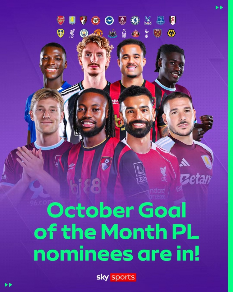 10月30日讯 英超官方公布了10月最佳得分 候选名单,24直播网凯塞多、萨拉赫的得分 在列。