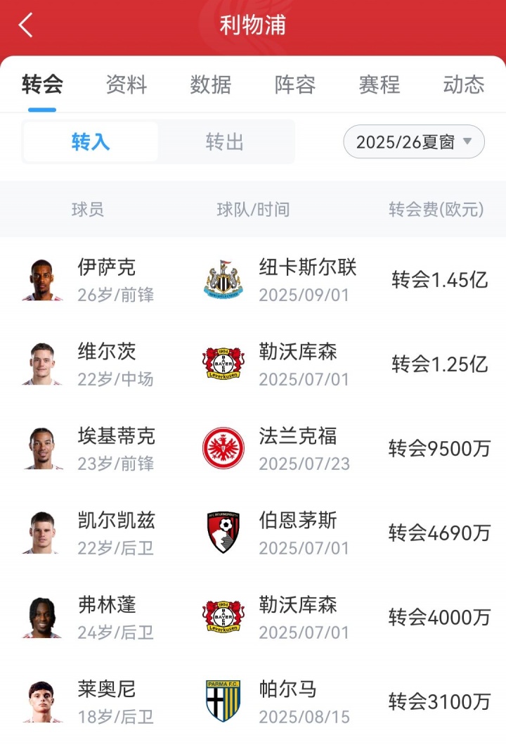 而今夏转会窗,利物浦更是前所未有的豪掷4.829亿欧引援,接连带来了两位转会标王维尔茨和伊萨克,虽然也有迪亚斯这样的核心球员离队,英超直播但大多数人认为新援足以弥补他离队的空缺。