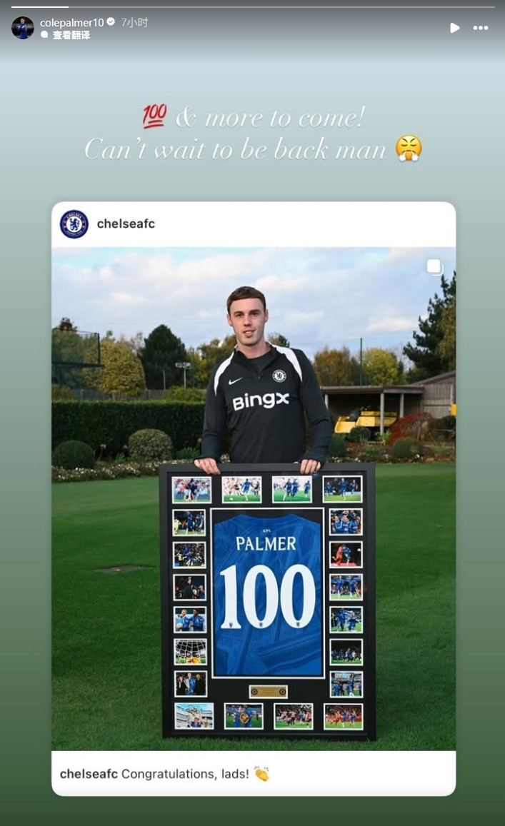 帕尔默晒切尔西百场运动活动 服 :接下来还有更多,等不及回归了!