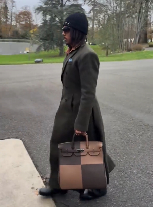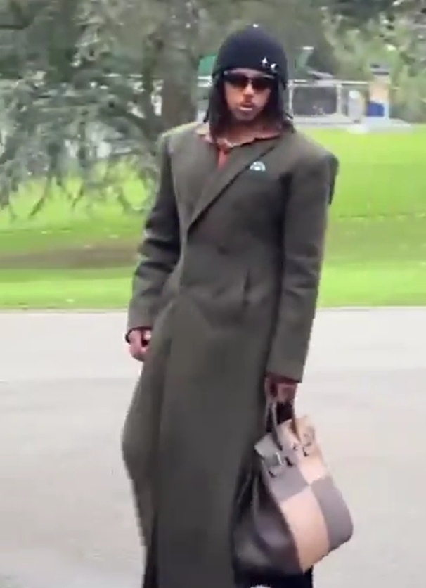 太潮了!孔德最新新潮 穿搭:身穿长大衣,手拿包